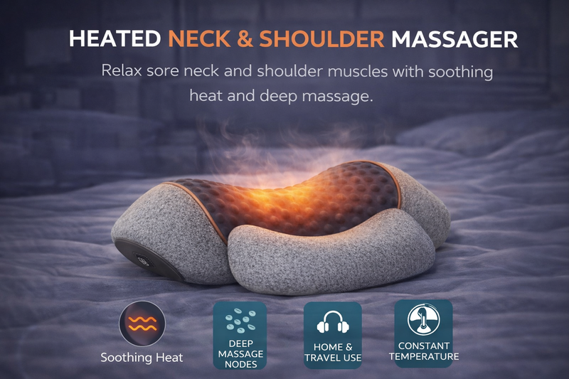 Built-in heating function helps loosen tight muscles and relieve neck tension for deeper relaxation.