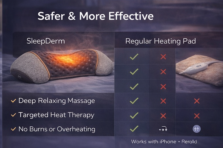 The SleepDerm™ ThermAlign Heated Cervical Pillow is designed to relieve neck tension, improve spinal alignment, and deliver deep relaxation while you rest.